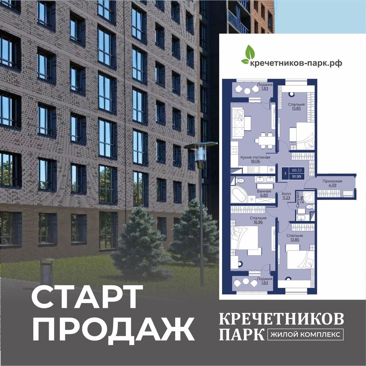 НА СТАРТЕ ПРОДАЖ доступен лучший выбор планировок — от 37 до 91 м².